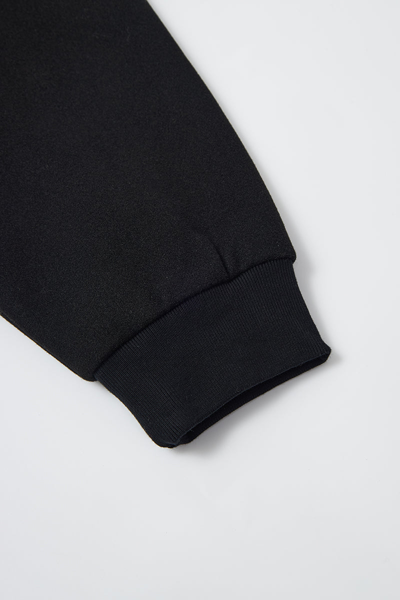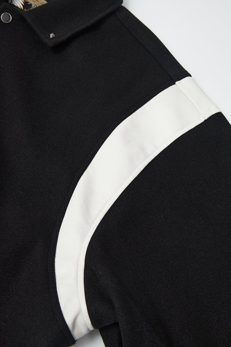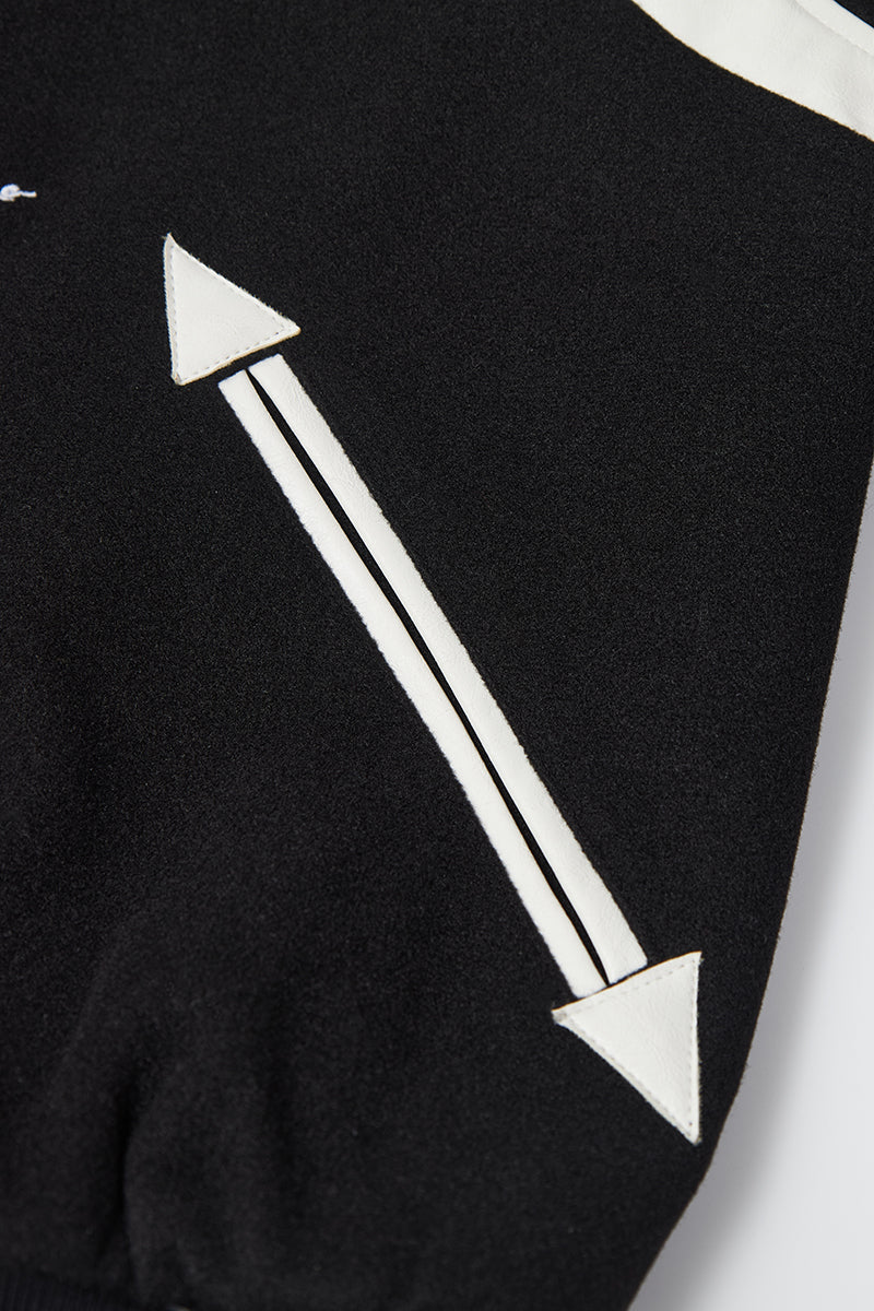 - Relaxed varsity silhouette with V-shaped paneling