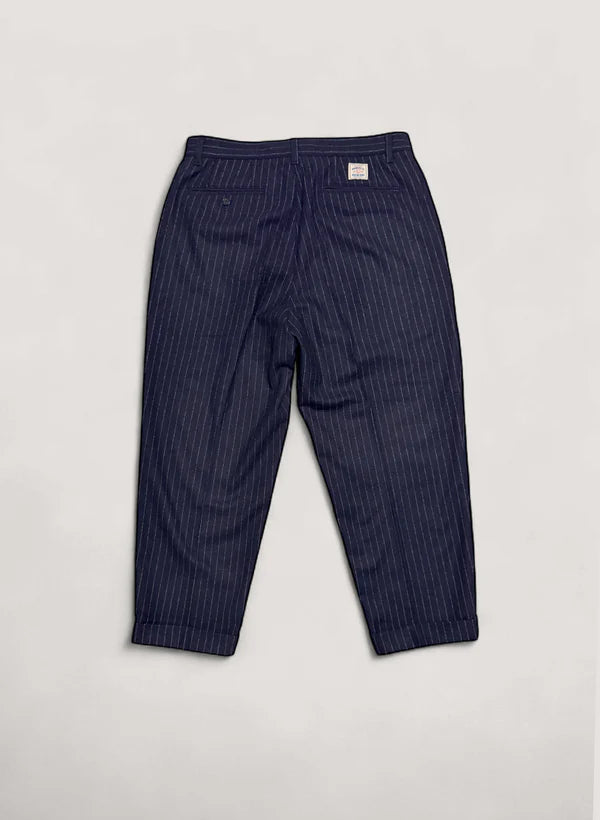 WOODBLOCK 2TUCK STRIPE WOOL TROUSER - NAVY